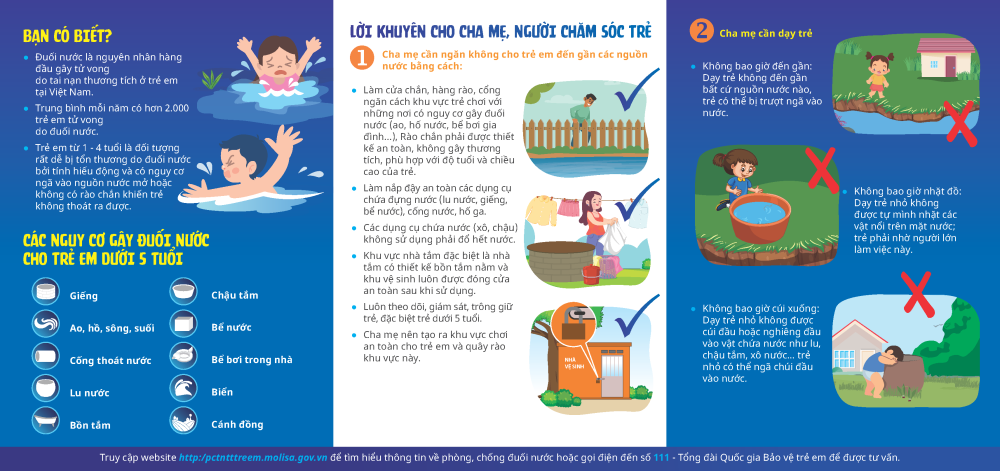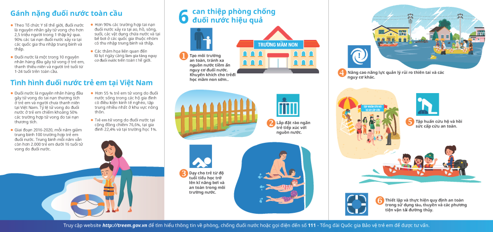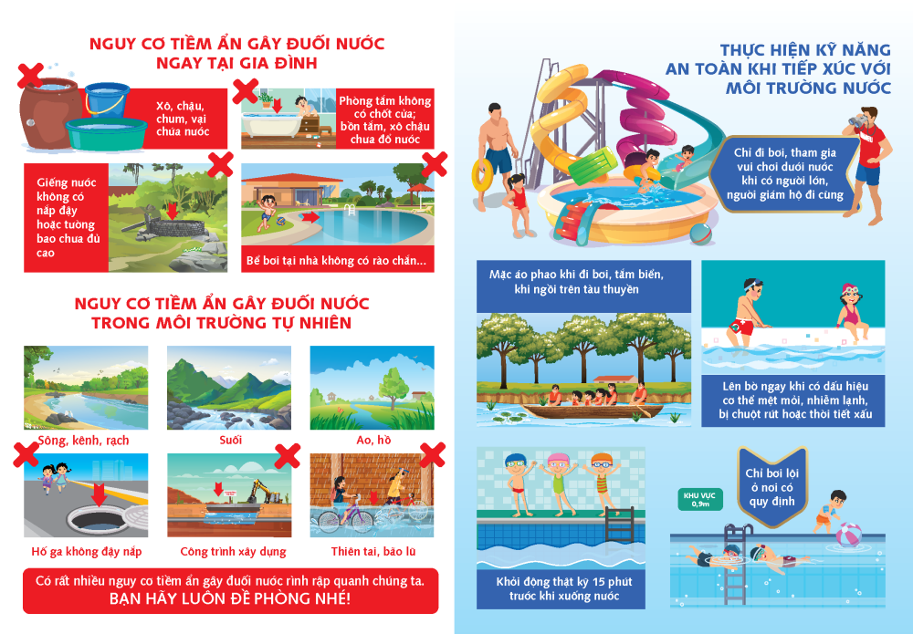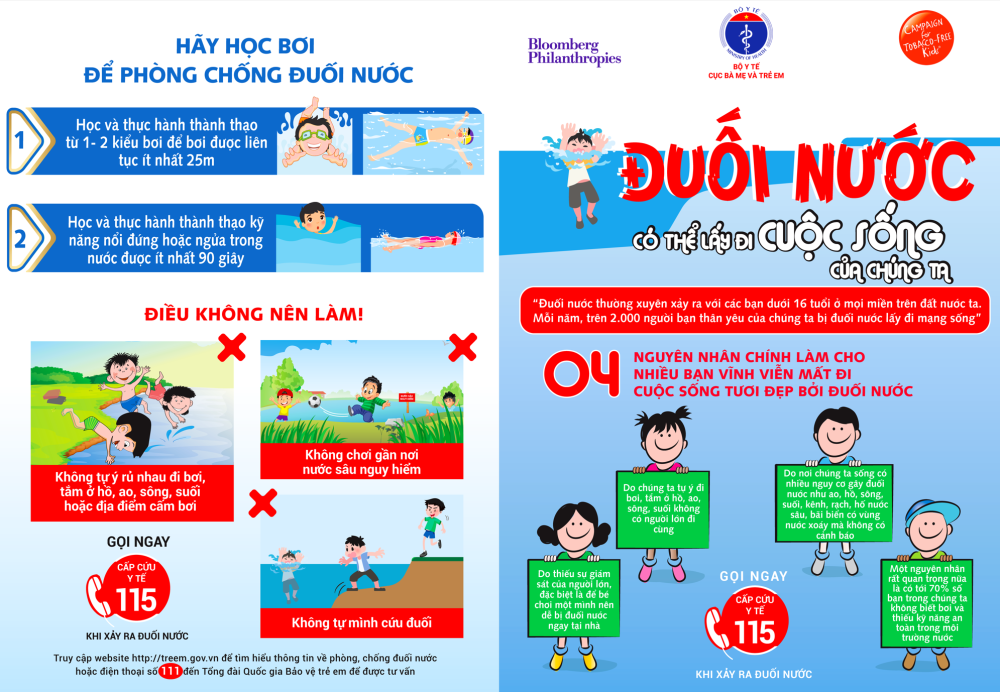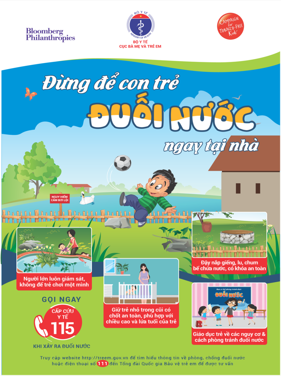 Tại Việt Nam, Bộ Y tế – Cục Bà mẹ & Trẻ em, cùng các địa phương đang triển khai Tuần lễ cao điểm truyền thông phòng, chống đuối nước từ 20–26/7 với các hoạt động như tập huấn kỹ năng bơi an toàn, sơ cấp cứu, lắp biển cảnh báo và dán áp phích truyền thông